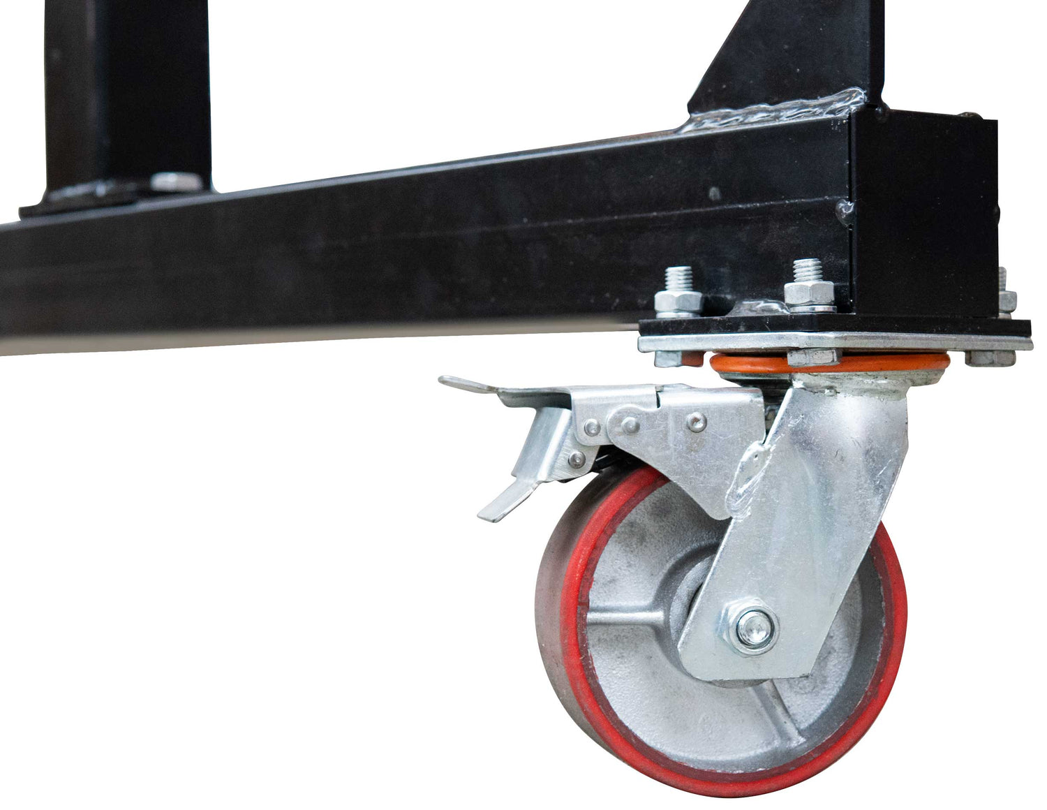 Die vier pannensicheren Laufrollen aus Polyurethan sind um 360° drehbar und ermöglichen ein leichtgängiges Verfahren des gesamten