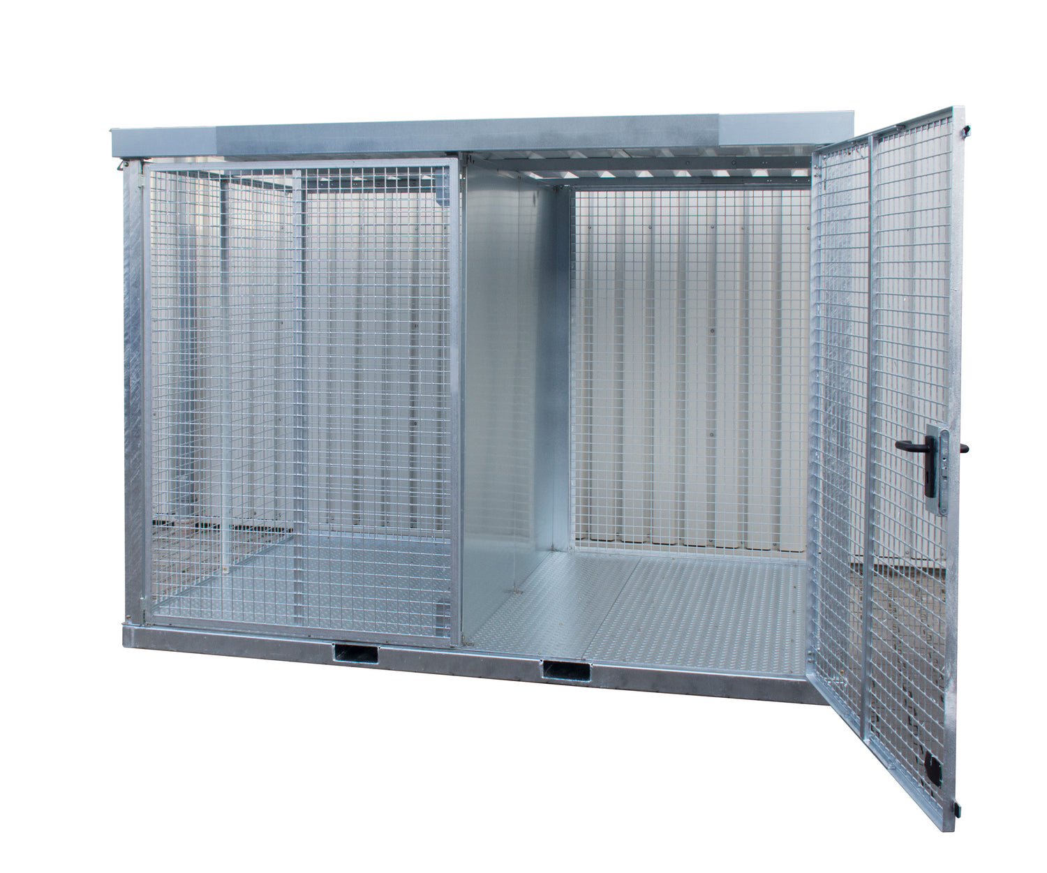 Gasflaschen-Container GFC-E - 1.085 x 1.140 x 2.170 mm / mit Tränenblechboden ist auf Lager und wird versandt, sobald es wieder verfügbar ist