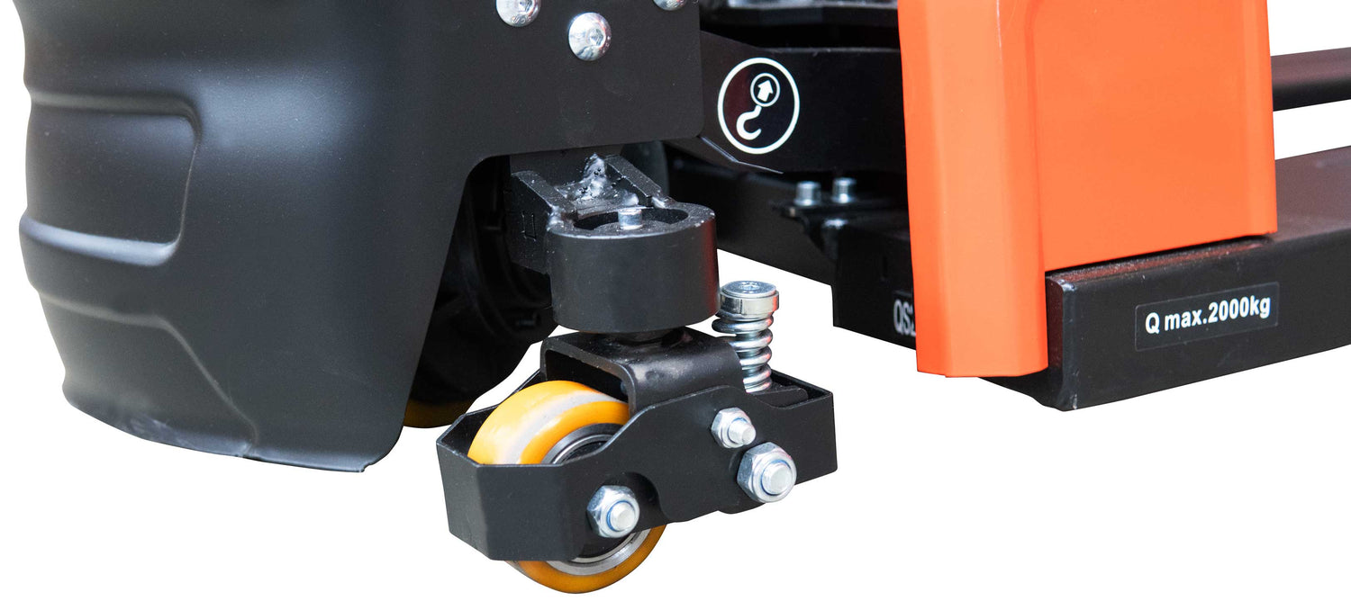 Dennoch muss man auf einen Elektroantrieb zum Bewegen schwererer Lasten oder zum Bewältigen längerer Strecken nicht verzichten. Mit einem 0,9 kW starken, bürstenlosen Antriebsmotor kann im voll beladenen Zustand bis zu 4,5 km/h verfahren werden.